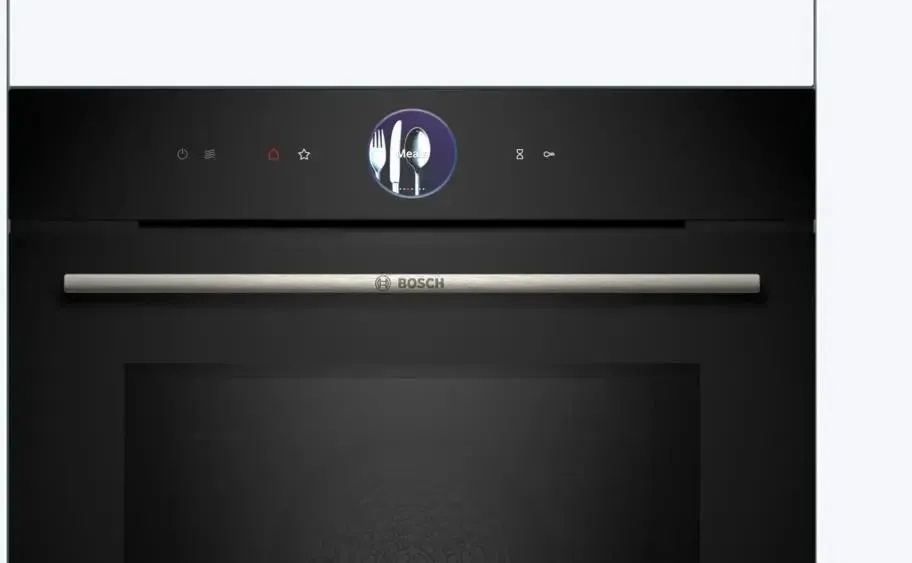- Особенности конструкции: вентилятор охлаждения, дисплей, полностью стеклянная внутренняя поверхность дверцы духовки, телескопические направляющие, термощуп, электронный программатор