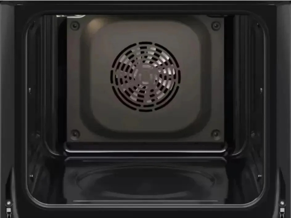 - Особенности конструкции: вентилятор охлаждения, дисплей, полностью стеклянная внутренняя поверхность дверцы духовки
