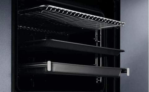 - Особенности конструкции: дисплей, полностью стеклянная внутренняя поверхность дверцы духовки, телескопические направляющие