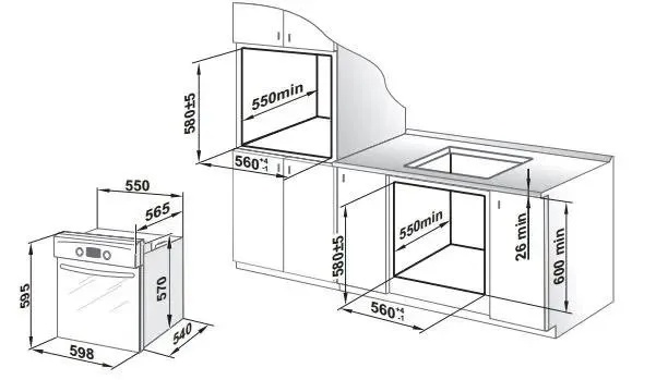 - Размеры ниши для встраивания: 55x54x57 см