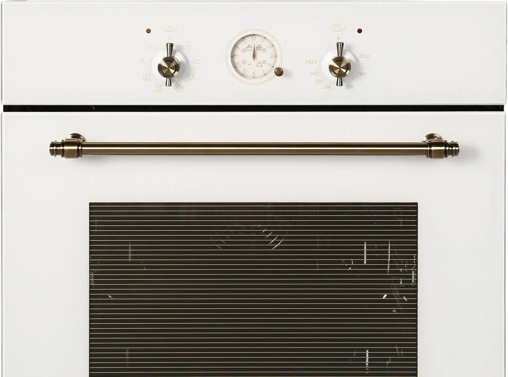 - Особенности конструкции: вентилятор охлаждения, двухуровневое освещение, полностью стеклянная внутренняя поверхность дверцы духовки, телескопические направляющие