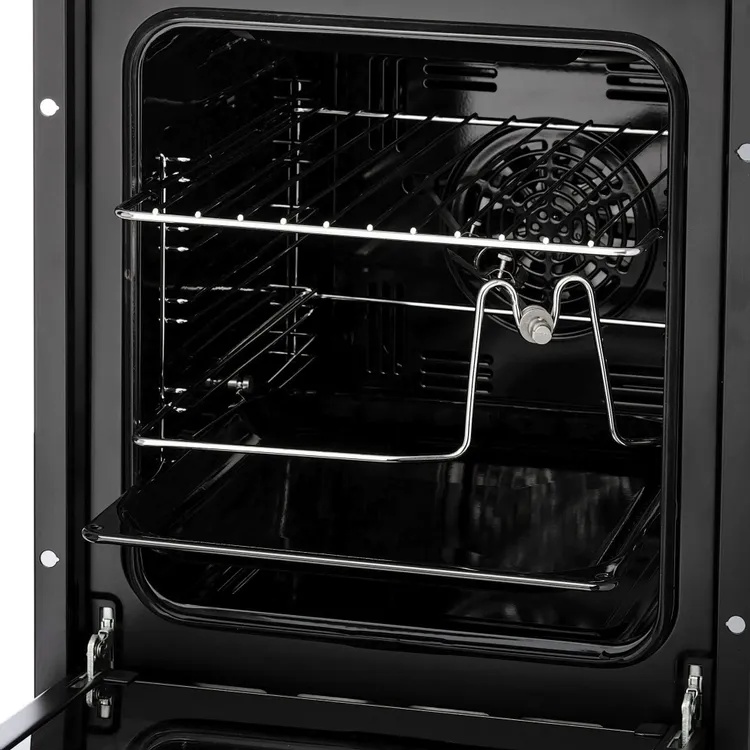 - Особенности конструкции: вентилятор охлаждения, вертел, полностью стеклянная внутренняя поверхность дверцы духовки