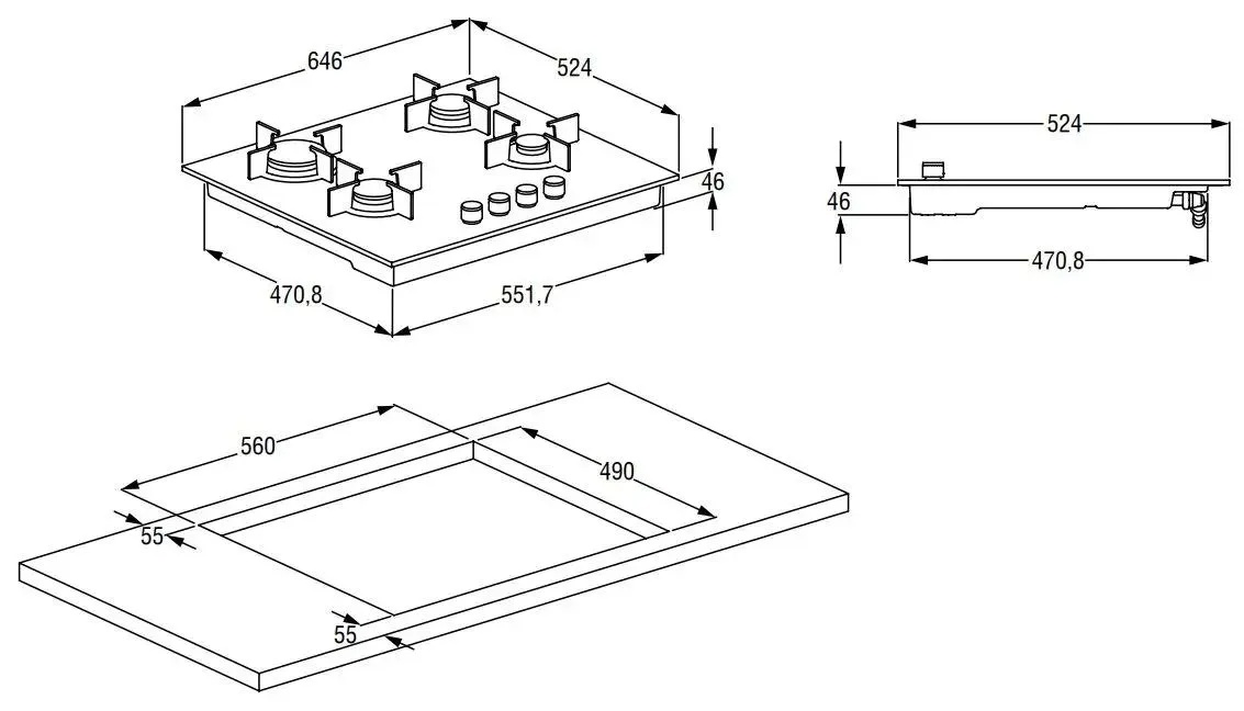 - Размеры ниши для встраивания: 560х490