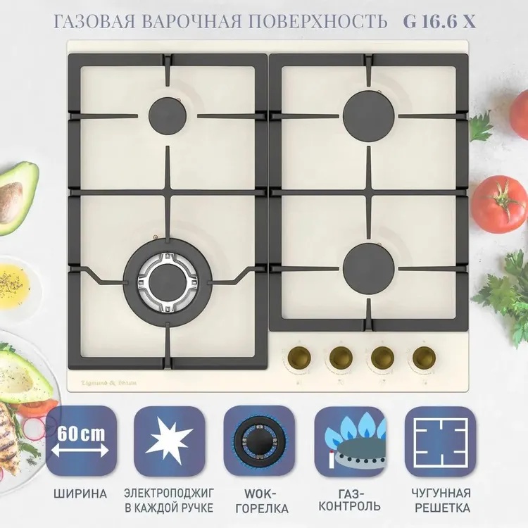 - Общее количество конфорок: 4