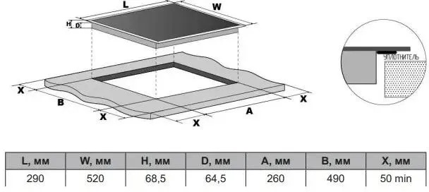 - Размеры ниши для встраивания: 260x490