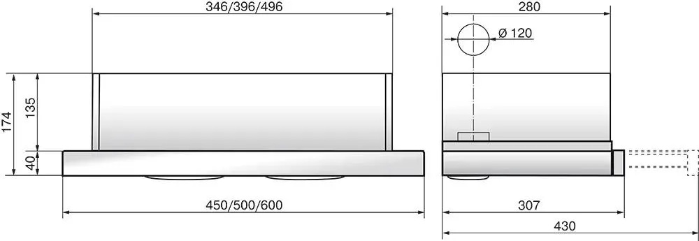 • Конструктивные особенности вытяжки: встроенная подсветка