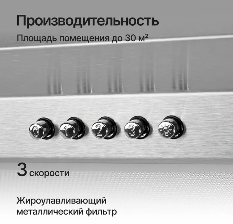 - Управление вытяжкой: регулятор мощности