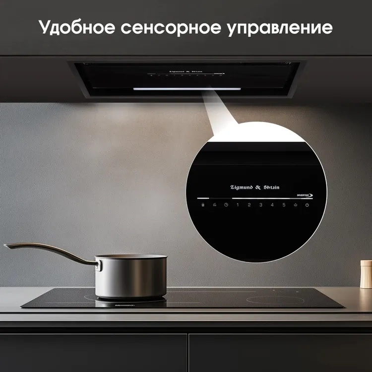 - Управление вытяжкой: регулятор мощности, таймер